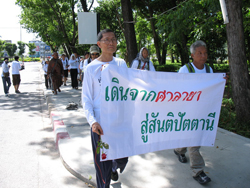 ผ่าน จ.สงขลา ไปแล้ว สำหรับขบวนเดินเท้า "ธรรมยาตราสู่สันติปัตตานี" นำโดย นายโคทม อารียา ที่ออกสตาร์ทจากมหาวิทยาลัยมหิดล วิทยาเขตศาลายา จ.นครปฐม เมื่อวันที่ 11 ก.ค.ที่ผ่านมา กับระยะทางรวม 1,100 กิโลเมตร เพื่อกระตุ้นเตือนให้สังคมไทยร่วมกันใช้สันติวิธีแก้ไขปัญหาความขัดแย้ง โดยเฉพาะไฟใต้ ซึ่งขณะนี้เหลืออีกไม่ถึง 200 กิโลเมตรก็จะถึงที่หมาย ใช้เวลาไปทั้งสิ้น 1 เดือนครึ่ง
