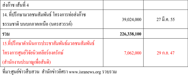 ทั้งนี้ เป็นการว่าจ้างตั้งแต่ ปี 2554 เป็นต้นมา 4 โครงการ วงเงิน 138,922,800 บาท