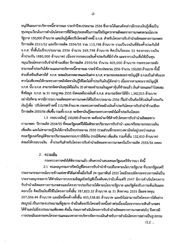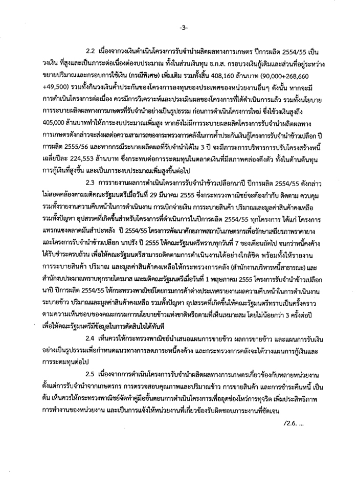 หมายเหตุ : เป็นรายละเอียดในหนังสือกระทรวงการคลัง นำเสนอต่อที่ประชุมคณะรัฐมนตรี (ครม.) เมื่อวันที่ 2 ตุลาคม 2555 ประกอบความเห็นวาระการพิจารณา เรื่อง รายงานผลการดำเนินการโครงการรับจำนำข้าวเปลือกนาปี ปีการผลิต 2554/2555 และพิจารณาปริมาณและวงเงินโครงการรับจำนำข้าวเปลือก ปีการผลิต 2555/56 ของกระทรวงพาณิชย์ สำนักข่าวอิศรา (www.isranews.org) เห็นว่ามีความน่าสนใจ จึงนำมาเสนอให้สาธารณชนได้รับทราบ