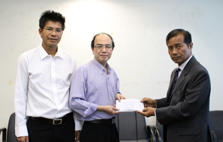 นายถาวร เสนเนียม ตัวแทนคณะกรรมการจัดงาน "ร่วมใจไทยดับไฟใต้" มอบเงินจำนวน 100,000 บาท (หนึ่งแสนบาทถ้วน) ให้กับ ศูนย์ข่าวภาตใต้ สำนักข่าวอิศรา เพื่อเป็นสวัสดิการให้กับนักข่าวศูนย์ข่าวภาคใต้ สำนักข่าวอิศรา
