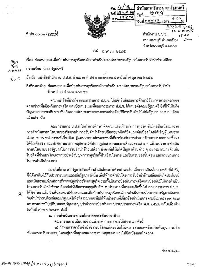 รายละเอียดในหนังสือ ป.ป.ช. ส่งถึง น.ส.ยิ่งลักษณ์ ชินวัตร นายกรัฐมนตรี เมื่อวันที่ 30 เมษายน 2555 ที่ผ่านมา