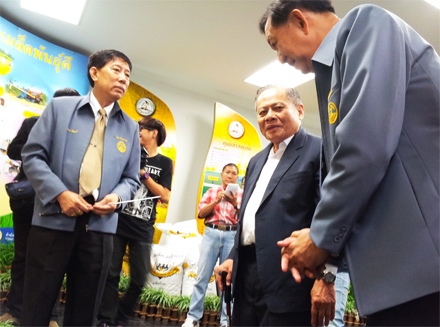 นายชัยฤทธิ์ ดำรงเกียรติ อธิบดีกรมการข้าว รายงานผลการดำเนินงานเรื่องข้าวและสถานการณ์ข้าวไทยว่า ปัจจุบันประเทศไทยมีพื้นที่ปลูกข้าว 78 ล้านไร่ และเกษตรกรมีความต้องการเมล็ดพันธุ์ข้าวเพื่อการเพาะปลูกปีละ 6 แสนตันทั่วทั้งประเทศ โดยขณะนี้กรมฯมีพันธุ์ข้าวที่ผ่านการวิจัยและรับรองออกมาใหม่เพื่อช่วยแก้ไขปัญหาการปลูกข้าวแก่เกษตรกรทั้งสิ้น 4 พันธุ์ ได้แก่ พันธุ์ขาวบ้านนา 432 ข้อดี คือ ให้ผลผลิตมากปลูกได้ดีในพื้นที่น้ำขัง พันธุ์ข้าวเหนียวดำลืมผัว มีคุณค่าทางโภชนาการสูง พันธุ์กข.47 ป้องกันเพลี้ยกระโดดสีน้ำตาลได้ดี และพันธุ์ กขผ.1 ซึ่งเป็นข้าวลูกผสมพันธุ์แรกของไทยที่ให้ผลผลิตมาก