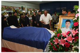 บรรยายภาพ : พิธีรดน้ำศพครูมาโนช ที่วัดนพวงศาราม อ.เมืองปัตตานี บรรยากาศเต็มไปด้วยความโศกเศร้า (ภาพโดย อับดุลเลาะ หวังนิ)