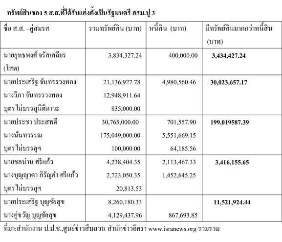 เปิดกรุสมบัติ 5 ส.ส.ขึ้นชั้นรัฐมนตรี“ประชา ประสพดี”รวยเหนือ“ตู่ จตุพร”200 ล้านโชว์พระสมเด็จบางขุนพรหมองค์ละ10 ล้าน เมียฟันค้าทองคำแท่ง 2.5 ล้าน หลังบ้าน รมช.สธ.รับค่านายหน้า 5 แสน