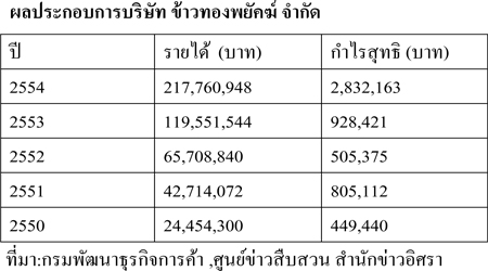 สำนักข่าวอิศรา www.isranews.org ตรวจสอบพบว่า บริษัท ข้าวทองพยัคฆ์ จำกัด จดทะเบียนวันที่ 3 กรกฎาคม 2529 ทุนปัจจุบัน 21 ล้านบาท ที่ตั้งเลขที่ 53 หมู่ที่ 1 ตำบลปะหลาน อำเภอพยัคฆภูมิพิสัย จังหวัดมหาสารคาม มีครอบครัวนายยุทธพงศ์ จรัสเสถียร เป็นเจ้าของ