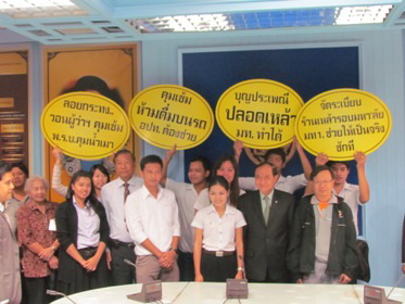 เครือข่ายงดเหล้า ยื่น มท.1 สั่ง ผวจ.-อปท.เข้ม กม.ห้ามเหล้าบนรถ-สถานราชการ รัฐวิสาหกิจ-รร.-รง.-สวนสาธารณะ-วัด ชงต้นแบบงานบุญปลอดเหล้ารับลอยกระทง ผลสำรวจคนรู้กฎหมายแต่จะขาย-จะดื่ม