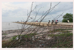 1 มุมหนึ่งของชายหาดหลังเมืองปัตตานี แนวขอบปูนที่เห็นคือสันเขื่อนที่ทอดยาวไปในทะเล