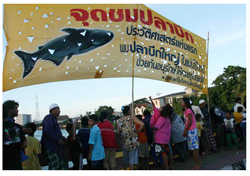 ที่ไหนมีฝูงชน ที่นั่นเป็นต้องมีพ่อค้าแม่ขาย เป็นสัจธรรมแบบไทยๆ ที่เห็นกันทุกภาคไม่เว้นแม้ชายแดนใต้ เมื่อปลาบึกยักษ์ปรากฏกาย และมีชาวบ้านแห่กันมาดูปลาวันละหลายร้อยชีวิต บรรดารถเข็นขายของ ทั้งของกินของเล่น ก็เข็นมาจอดบริการกันแทบจะเต็มสะพาน ปลุกเศรษฐกิจรากหญ้าปัตตานีให้ฟื้นขึ้นท่ามกลางสถานการณ์ความไม่สงบได้อย่างน่าอัศจรรย์