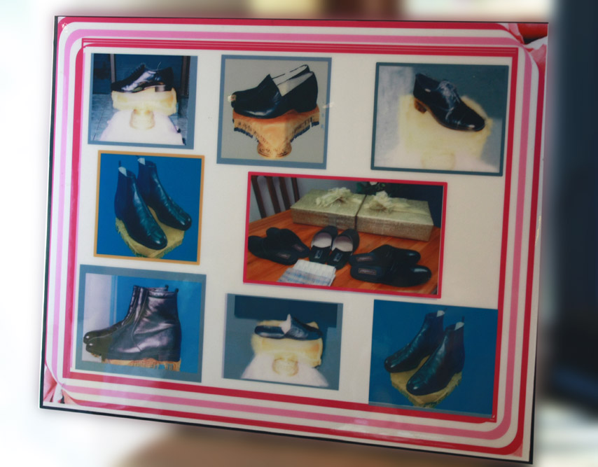 ฉลองพระบาททั้ง 6 คู่ ที่ผ่านการซ่อมจากช่างนอกราชสำนัก ร้าน ก.เปรมศิลป์