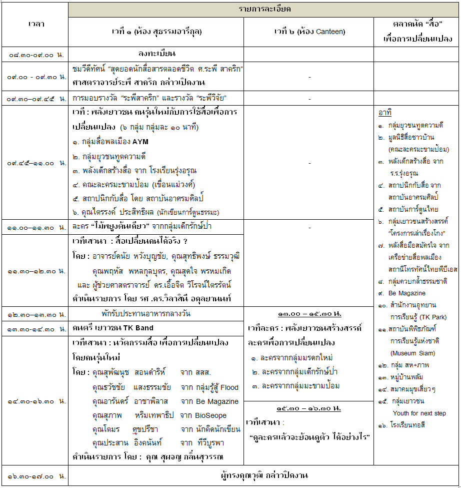 ระพีเสวนา: การเรียนรู้เพื่อความเป็นไท ครั้งที่ ๖/๗ “สื่อเพื่อการเปลี่ยนแปลง”