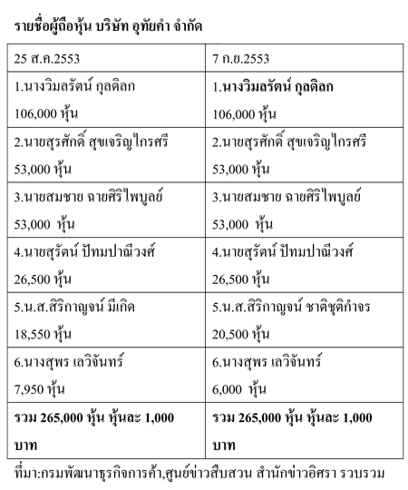 ผู้ถือหุ้นบริษัท อุทัยคำ จำกัด มี 6 คน คือ