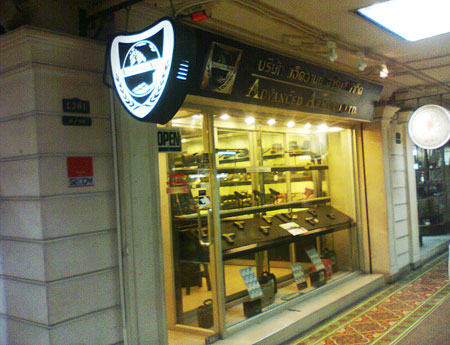 พบบริษัทดังกล่าวตั้งอยู่ที่ ชั้น 3 ห้างดิโอลส์สยามพลาซ่า ย่านพาหุรัด ปรากฏเป็นร้านจำหน่ายปืน เสื้อเกราะกันกระสุน เครื่องตรวจจับวัตถุระเบิดและโลหะ ด้านหน้าระบุป้ายชื่อ บริษัท แอ็ดวานซ์ อาร์มส จำกัด