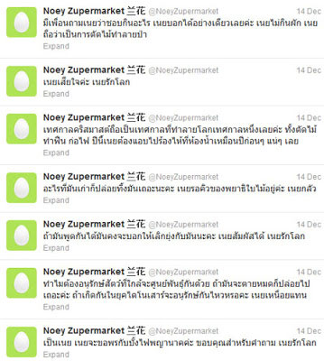 เพราะหลังเปิดตัว ในรูปแบบ ทวิตเตอร์ ใช้ชื่อว่า "Noey Zupermarket 兰花" พร้อมสโลแกน ที่ว่า “เนยรักโลก ร่วมแชร์การถนอมโลกร่วมไปกับเนยกันได้นะคะ โลกสีเขียวค่ะ" เมื่อวันที่ 12 ธันวาคม 2555 ที่ผ่านมา