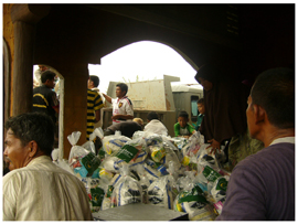 1 กองสิ่งของบริจาคขนาดมหึมาที่กำลังมีปัญหาด้านการบริหารจัดการ (ภาพโดย ปรัชญา โต๊ะอิแต)