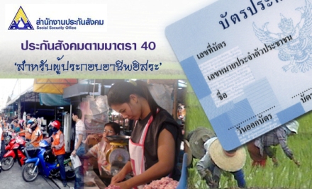และในปี 2556 สปส.มีเป้าหมายเพิ่มผู้ประกันตนมาตรา 40 ซึ่งเป็นแรงงานนอกระบบ เช่น แม่ค้า มอเตอร์ไซค์รับจ้าง ให้ได้อีกอย่างน้อยไม่ต่ำกว่า 2 แสนคน จากปัจจุบันที่มีอยู่กว่า 1.2 ล้านคน รวมเป็นกว่า 1.4 ล้านคน .