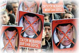 2 ภาพเหตุการณ์ในอียิปต์ และภาพประธานาธิบดีฮอสนี บูมารัก จากอินเทอร์เน็ต