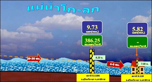 สถานการณ์ล่าสุด(4 ม.ค.) ในลุ่มน้ำโก-ลก ระดับน้ำที่สถานี X119A บริเวณสะพานลันตู อ.สุไหงโก-ลก สูงกว่าตลิ่ง 7 เซนติเมตร แนวโน้มระดับน้ำยังคงเพิ่มขึ้น และยังคงมีน้ำเอ่อล้นตลิ่งเข้าท่วมพื้นที่ลุ่มต่ำในเขตเทศบาลเมืองสุไหงโก-ลก สูงประมาณ 20 – 25 เซนติเมตร หากไม่มีฝนตกหนักลงมาเพิ่มเติม คาดว่าจะเข้าสู่ภาวะปกติภายใน 1 สัปดาห์นี้