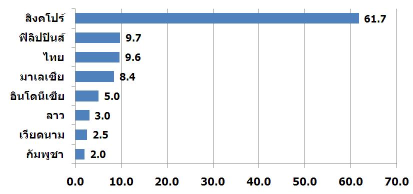 กราฟข้างบนแสดงให้เห็นว่า หากปรับค่าแรงของประเทศไทยเป็น 300 บาทต่อวันแล้ว ค่าแรงของไทยจะสูงเป็นอันดับ 3 รองจากประเทศสิงคโปร์และฟิลิปปินส์ หากพิจารณาค่าแรงของไทยกับประเทศเพื่อนบ้านเช่น ลาว เวียดนาม กัมพูชา จะพบว่าประเทศเหล่านี้มีค่าแรงน้อยกว่าไทยกว่า 3 เท่า ซึ่งอาจเป็นไปได้ว่าในอุตสาหกรรมประเภทที่ใช้แรงงานเข้มข้นจะหันไปพึ่งแรงงานจากประเทศเพื่อนบ้านเหล่านี้แทน