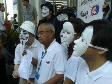 วันที่ 13 ม.ค. 56 กลุ่มแฟนเพจเฟซบุ๊ก ‘รณรงค์แบนช่อง 3 กรณีถอดละคร เหนือเมฆ 2 สนองคำสั่งนักการเมือง’ ราว 100 คน ร่วมสวมหน้ากากสีขาวชุมนุมหน้าสถานีโทรทัศน์ไทยทีวีสีช่อง 3 เรียกร้องให้แพร่ภาพละครเหนือเมฆ 2 ตอน มือปราบจอมขมังเวทย์จนจบ โดยมีนายบริสุทธิ์ บูรณะสัมฤทธิ์ ผู้อำนวยการฝ่ายประชาสัมพันธ์ บริษัท บางกอก เอนเทอร์เทนเมนต์ จำกัด (ช่อง 3) เป็นตัวแทนรับหนังสือร้องเรียน
