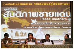 งานมหกรรมสันติภาพชายแดนใต้ที่จัดโดยมหาวิทยาลัยสงขลานครินทร์ วิทยาเขตปัตตานี (ม.อ.ปัตตานี) ซึ่งเป็นงานใหญ่งานแรกของปี 2553 และ "ทีมข่าวอิศรา" เคยรายงานบรรยากาศภาพรวมของงานให้ทราบไปแล้ว แต่ยังมีแง่มุมน่าสนใจที่สมควรเก็บตกมาบอกเล่าเก้าสิบกันใหม่ โดยเฉพาะการเสวนาในหัวข้อ “ไฟใต้กับกระบวนการสร้างสันติภาพที่ยั่งยืน”