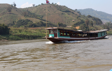 (เรือนักท่องเที่ยวล่องแม่น้ำโขงมีให้เห็นตลอดลำน้ำ)