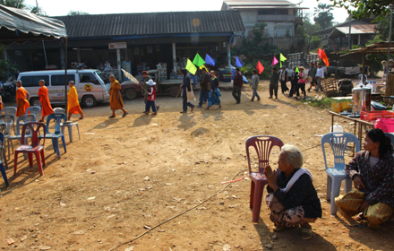 (ผู้เฒ่าผู้แก่ยังคงวิถีประเพณีความเชื่อแต่โบราณ เพื่อแสดงความกตัญญูต่อแม่น้ำโขงแหล่งพันธุ์ปลา ด้วยการเดินธรรมยาตรา ทำบุญสืบชะตาแม่น้ำโขง)