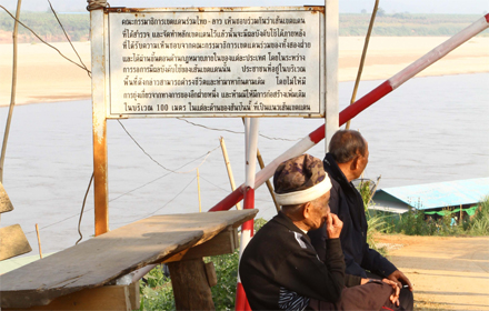 (สองผู้เฒ่านั่งเหงาๆ ที่ริมท่าเรือขนถ่ายสินค้าตามแนวชายแดนซึ่งมีตลอดแนว อ.เชียงของ จ.เชียงราย)