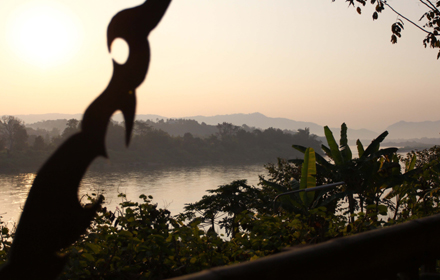 (ยามเช้าของแม่น้ำโขงเมื่อมองจากฝั่งไทยไปยังลาว)