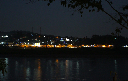 (เมืองห้วยทรายฝั่งลาวในยามราตรีที่มีแสงสีทั้งจากคาสิโน โรงแรม และธูรกิจท่องเที่ยว)
