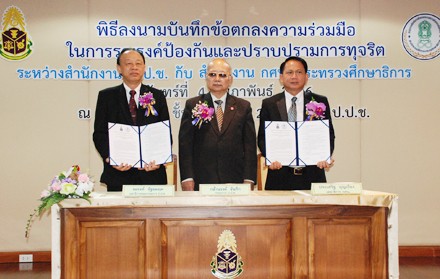 โดยมีนายณรงค์ รัฐอมฤต เลขาธิการคณะกรรมการ ป.ป.ช. ในฐานะผู้แทนสำนักงาน ป.ป.ช. และนายประเสริฐ บุญเรือง เลขาธิการ กศน. ในฐานะผู้แทนสำนักงาน กศน. กระทรวงศึกษาธิการ โดยมีนาย กล้านรงค์ จันทิก กรรมการ ป.ป.ช. ร่วมลงนามในฐานะพยานในพิธี