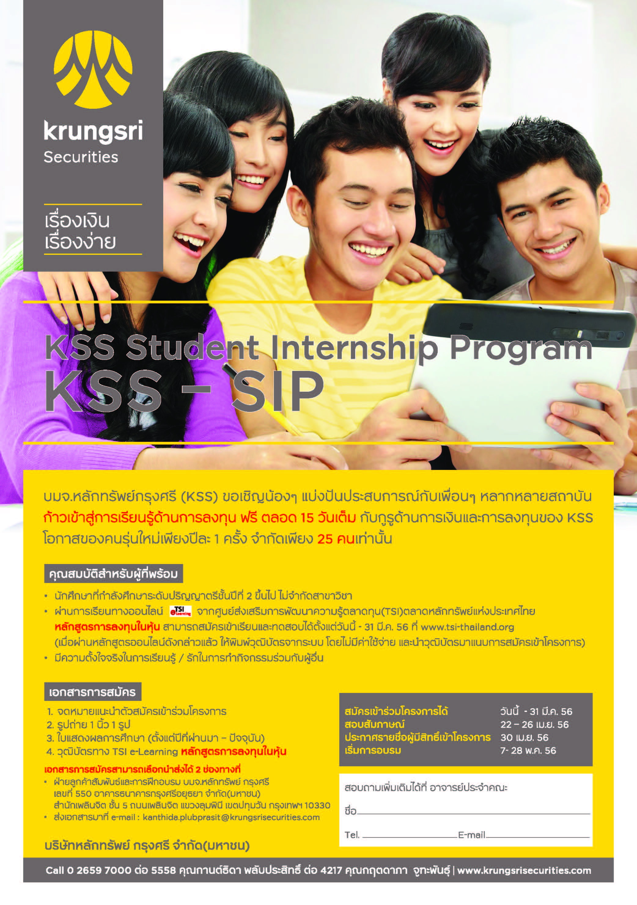 โครงการ KSS Student Internship Program : KSS-SIP จัดโดย บล.กรุงศรี KSS