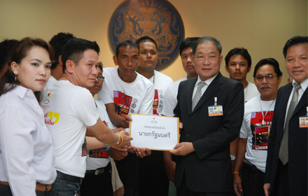 (12 ก.พ.) ที่ตึกบัญชาการ 1 ทำเนียบรัฐบาล กลุ่มเครือข่ายกำนัน ผู้ใหญ่บ้าน เครือข่ายกองทุนแม่ต้านภัยยาเสพติด จ.นครศรีธรรมราช ประมาณ 30 คน ที่ออกเดินเท้าจาก จ.นครศรีธรรมราช เมื่อวันที่ 20 ม.ค.ที่ผ่านมา ภายใต้กิจกรรม "เขาหลวงสู่เมืองหลวง รวมพลังชุมชนขจัดสิ้นยาเสพติด" นำโดยนายเฉลิม กาญจนพิทักษ์ ผู้ใหญ่บ้านเก้ากอ ต.ทอนหงส์ อ.พรหมคีรี จ.นครศรีธรรมราช ได้เข้ายื่นจดหมายเปิดผนึกต่อนายกรัฐมนตรี น.ส.ยิ่งลักษณ์ ชินวัตร เพื่อขอให้ดำเนินการให้รัฐบาลแก้ไขปัญหายาเสพติดในพื้นที่ จ.นครศรีธรรมราช อย่างจริงจัง โดยมี พล.ต.อ.ภานุพงศ์ สิงหรา ณ อยุธยา รองเลขาธิการนายกรัฐมนตรีฝ่ายการเมือง เป็นตัวแทนออกมารับเรื่อง