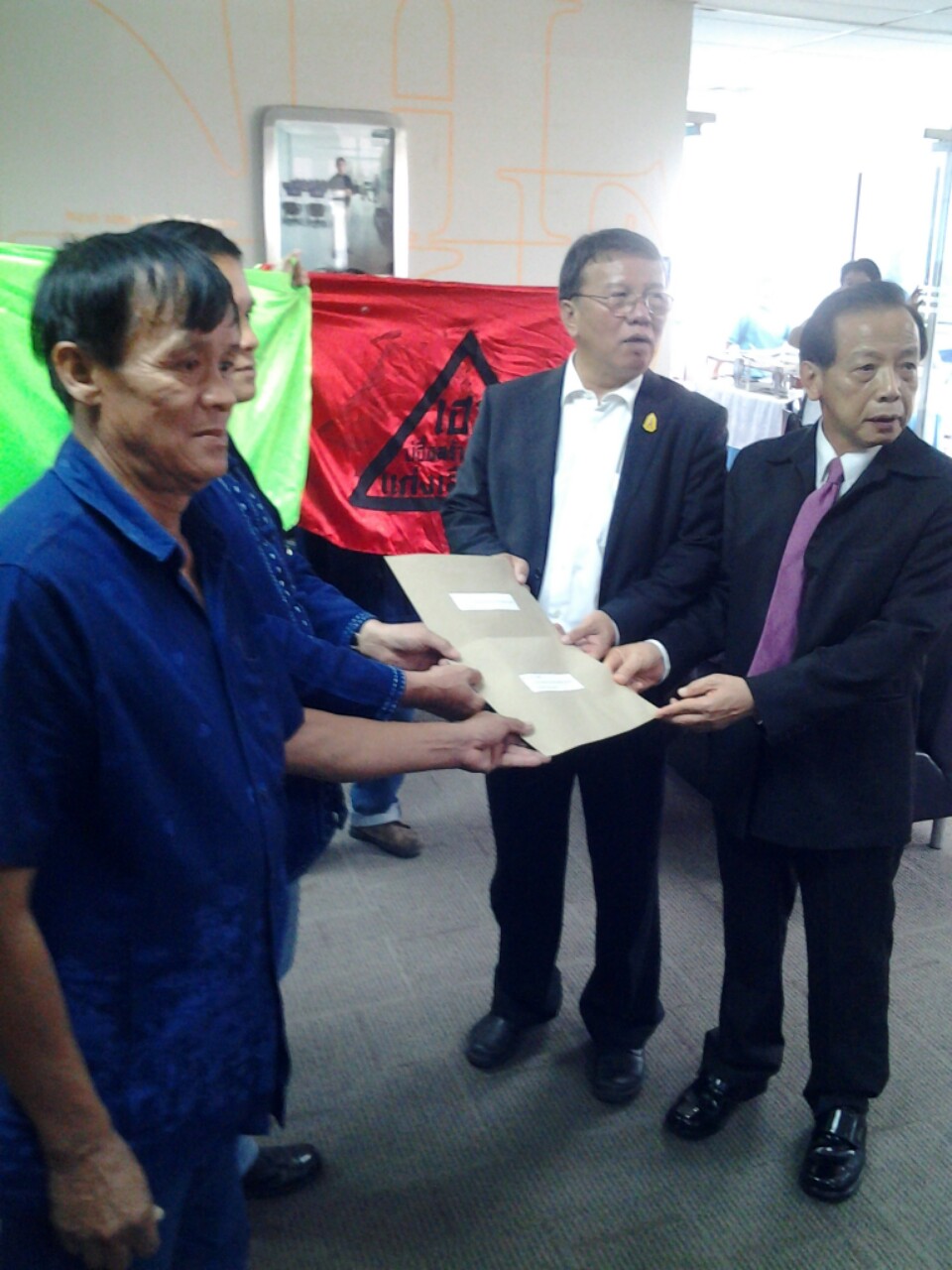 ผู้สื่อข่าวรายงานด้วยว่าในงานเดียวกัน นายสมเมิ่ง เหมืองร้อง ประธานคณะกรรมการคัดค้านการก่อสร้างเขื่อนแก่งเสือเต้น ร่วมด้วยชาวบ้าน ในตำบลสะเอียบ จ.แพร่ ซึ่งเป็นพื้นที่หนึ่งที่อยู่ในกรอบแนวความคิดที่จะมีการก่อสร้างเขื่อนแก่งเสือเต้น ได้ยื่นหนังสือคัดค้านการก่อสร้างเขื่อนแก่งเสือเต้น ผ่านนายสุรจิต ชิรเวทย์ รองประธานคณะกรรมาธิการทรัพยากรธรรมชาติและสิ่งแวดล้อม วุฒิสภา เพื่อฝากไปถึงนายปลอดประสพ สุรัสวดี รองนายกรัฐมนตรีในฐานะประธานคณะกรรมการบริหารจัดการน้ำและอุทกภัย (กบอ.)