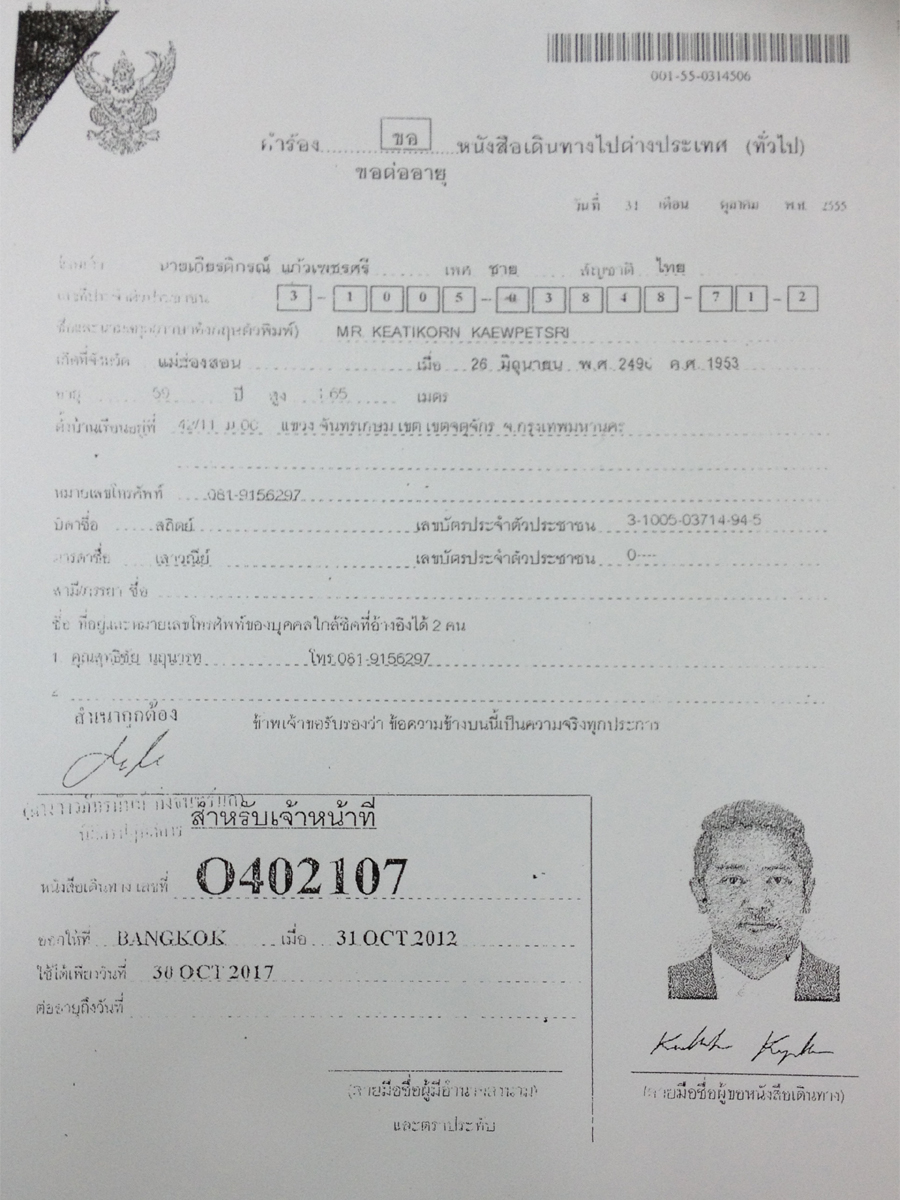 (คลิกเพื่อขยาย - คำร้องขอพาสปอร์ตของ พ.ต.ท.สุวิชชัย แก้วผลึก ที่เปลี่ยนชื่อเป็นนายเกียรติกรณ์ แก้วเพชรศรี)