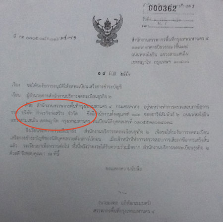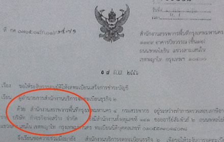 ผู้สื่อข่าวรายงานว่า เมื่อวันที่ 7 กุมภาพันธ์ 2556 สำนักงานสรรพากรพื้นที่กรุงเทพมหานคร 4 ได้ทำหนังสือที่ กค.0705.04 (ก.01)/1571 เรียนผู้อำนวยการสำนักงานบริการจดทะเบียนธุรกิจ 2 ระบุว่า