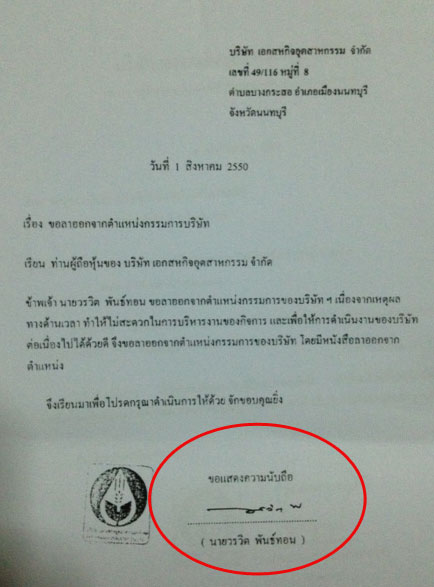 จากการตรวจสอบรายชื่อผู้ถือหุ้นบริษัทฯ ล่าสุด เมื่อวันที่ 29 เมษายน 2555 พบว่า นายวรวิต พันธ์ทอน ยังปรากฏรายชื่อเป็นผู้ถือหุ้นใหญ่ จำนวน 21,000 หุ้น