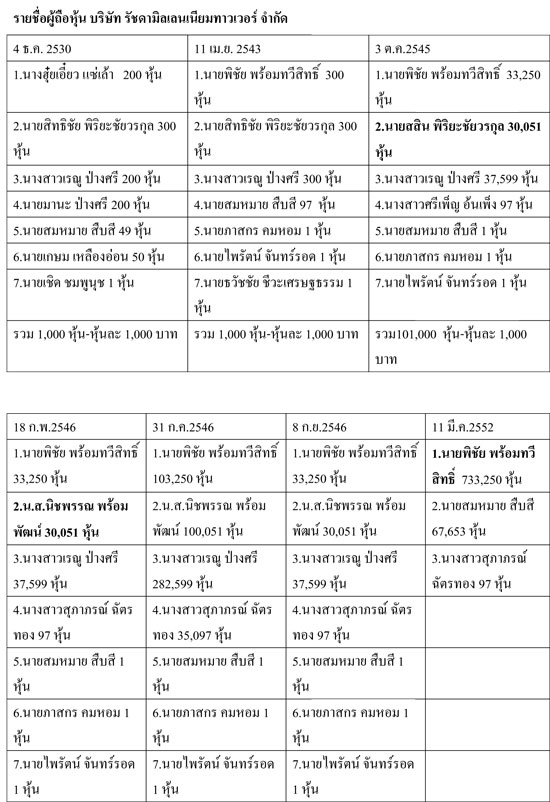 สำนักข่าวอิศรา www.isranews.org ตรวจสอบพบว่า บริษัท รัชดา มิลเลเนี่ยม ทาวเวอร์ จำกัด