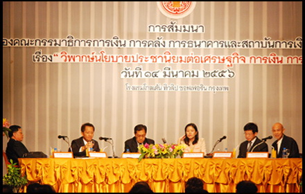 (14 มี.ค.) ที่โรงแรมโกลเด้นทิวลิป ถนนพระราม 9 คณะกรรมาธิการการเงิน การคลัง การธนาคารและสถาบันการเงิน วุฒิสภา จัดสัมมนาเรื่อง “วิพากษ์นโยบายประชานิยมต่อเศรษฐกิจ การเงิน การคลัง”