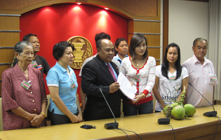 วันที่ 14 มี.ค. 56 ที่รัฐสภา เครือข่ายชุมชนยกกระบัตร จ.สมุทรสาคร เข้ายื่นหนังสือร้องเรียนต่อคณะกรรมาธิการสิ่งแวดล้อม สภาผู้แทนราษฎร และคณะกรรมาธิการศึกษาตรวจสอบเรื่องการทุจริตและเสริมสร้างธรรมาภิบาล วุฒิสภา เรื่องขอให้ระงับการออกใบอนุญาตประกอบกิจการโรงงานพลาสติกและโรงงานหลอมอลูมิเนียมของ 1.บริษัท บี เค รีไซเคิล จำกัด(โรงงานที่ 1) 2.บริษัท เอ็ม.ซี.ที. รอยัลวูด จำกัด (โรงงานที่ 2) 3.บริษัท มหาเจริญการทอ จำกัด (โรงงานที่ 3 )และ 4.บริษัท ฟิวเจอร์ อลูมิเนียม แอนด์ซัพพลาย จำกัด (โรงงานที่ 4 และ 5) ซึ่งเป็นโรงงานประเภทที่ 3 (โรงงานขนาดใหญ่ที่จะต้องได้รับใบอนุญาตก่อนดำเนินการตามพ.ร.บ.โรงงาน พ.ศ.2535) ในพื้นที่หมู่ 6 ต.ยกกระบัตร อ.บ้านแพ้ว จ.สมุทรสาคร เนื่องจากทำให้ชาวบ้านได้รับผลกระทบด้านสุขภาพ สิ่งแวดล้อม และการประกอบอาชีพเกษตรกรรม