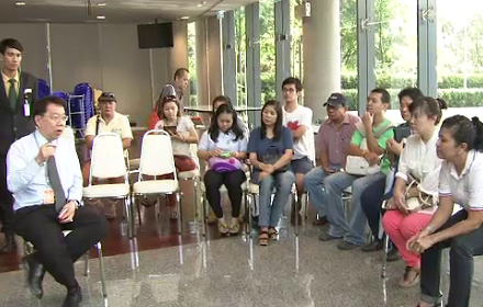 (นายมงคล ลีลาธรรม รอง ผอ.สถานีโทรทัศน์ไทยพีบีเอส ขณะพูดคุยกับผู้ประท้วงกลุ่มคนไทยผู้รักชาติ ในช่วงบ่ายวันที่ 15 มี.ค.2556 - ภาพจากเว็บไซต์สถานีโทรทัศน์ไทยพีบีเอส)