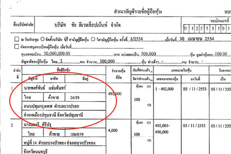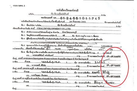 จากการตรวจสอบข้อมูลใน หนังสือบริคณห์สนธิ ประกอบการจดทะเบียนจัดตั้งบริษัทชัยดีเวลล็อปเม้นท์ จำกัด พบว่า ผู้ถือหุ้นบริษัท อีกสองคน คือ นางมลตรี ศิริปรุ และนายปัญญา อินทอนก็ระบุหมายเลขโทรศัพท์บริษัท โรงสีเอกไรซ์ จำกัด คือ 02-92599XX ไว้เป็นเบอร์ติดต่อเช่นกัน