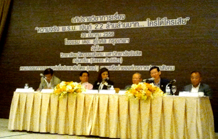 "การที่รัฐบาลใช้โวหาร ขอให้เชื่อรัฐบาล ว่าจะดูแลให้ดีที่สุดนั้นใช้ไม่ได้ ต้องมีการศึกษาออกมาให้เห็นชัดว่าโครงการจะบริหารจัดการอย่างไร ใช้จ่ายเงินอย่างไร มีความโปร่งใสอย่างไรและมีความคุ้มค่าอย่างไรจึงจะเชื่อถือได้ เมื่อก่อนการโกง ใครๆ บอกเป็นสิ่งผิดกฎหมาย แต่เดี๋ยวนี้การโกงพัฒนาไปมาก เริ่มมีการโกงแบบถูกกฎหมาย พยายามทำให้ถูกกฎหมาย"
