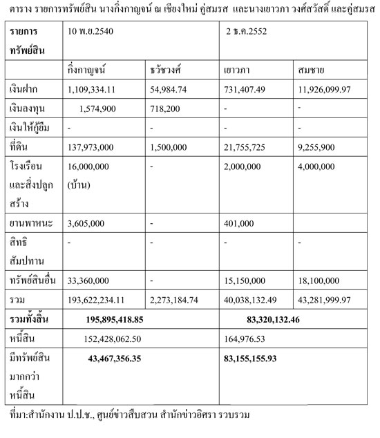 รวมทรัพย์สิน 2 คน 94,969,328.57 บาท หนี้สิน 144,143.52 บาท มีทรัพย์สินมากกว่าหนี้สิน 94,825,185.05 บาท