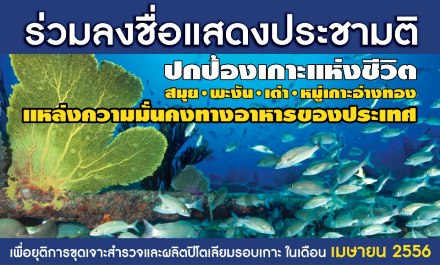 เครือข่ายพิทักษ์เกาะแห่งชีวิต ทำจดหมายเปิดผนึกชวนลงประชามติค้านขุดเจาะน้ำมันรอบเกาะสมุย-พะงัน –เต่า-หมู่เกาะอ่างทอง ระบุทำลายความมั่นคงอาหาร-ห่วงโซ่อาชีพท้องถิ่น