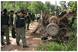 Captions : Three soldiers based in Yaha district of Yala province were killed instantly by a 20-kg IED detonated by insurgents. on July 2.