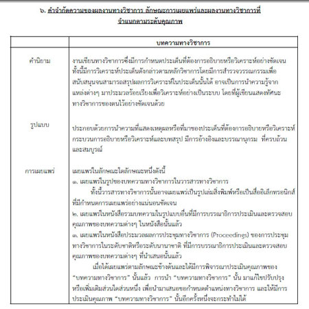 ข้อ ๓ ให้ยกเลิกคำจำกัดความของผลงานทางวิชาการ ลักษณะการเผยแพร่และผลงานทางวิชาการที่จำแนกตามระดับคุณภาพของบทความทางวิชาการ ตามเอกสารแนบท้ายประกาศ ก.พ.อ.เรื่อง หลักเกณฑ์และวิธีการพิจารณาแต่งตั้งบุคคลให้ดำรงตำแหน่งผู้ช่วยศาสตราจารย์ รองศาสตราจารย์และศาสตราจารย์ (ฉบับที่ ๒) พ.ศ. ๒๕๕๐ และให้ใช้ตามที่กำหนดไว้ท้ายประกาศนี้แทน