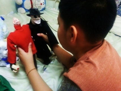 เป็นเวลาหนึ่งปีเต็มที่ต้องวิ่งหาโรงเรียนให้กับลูกชาย เพราะไม่มีที่ไหนรับ เนื่องจากสมุดพกประจำตัวนักเรียนจากโรงเรียนเก่าๆ บันทึกไว้เหมือนๆกันว่า ‘น้องดามทำร้ายร่างกายเพื่อน’ แต่ไม่มีโรงเรียนไหนที่ระบุถึงสาเหตุที่เกิดขึ้นว่าน้องดามถูกเพื่อนร่วมห้องรังแกจึงโต้ตอบด้วยการกัด ภาพที่ฝังใจแม่ที่สุดคือเห็นลูกตัวเองในสภาพที่ถูกครูมัดมือและเอาไม้ฟาดอยู่หลังห้อง แถมยังเรียกว่า ‘เด็กปีศาจ’ คนในครอบครัวยังบอกว่าบ้าทั้งลูกและแม่ถึงขั้นเรียก ‘หมาบ้า’ จนที่สุดแม่ตุ๊กตัดสินใจพาน้องดามไปโรงพยาบาลบ้า![]()