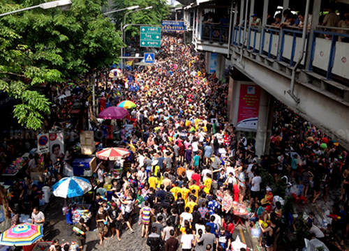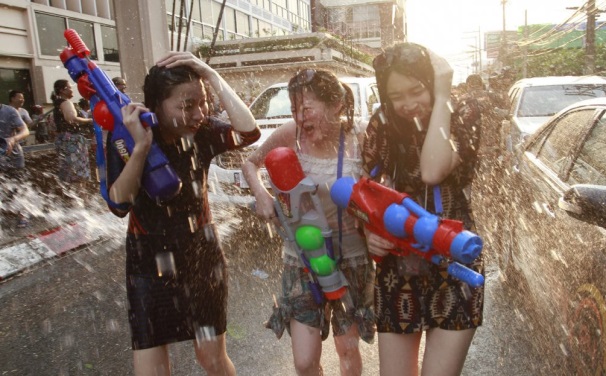 ภาพการเล่นน้ำสงกรานต์ของวัยรุ่นไทยสมัยนิยม