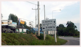 Caption : Crossroad from Highway No 418 to Mae Larn district of Pattani province