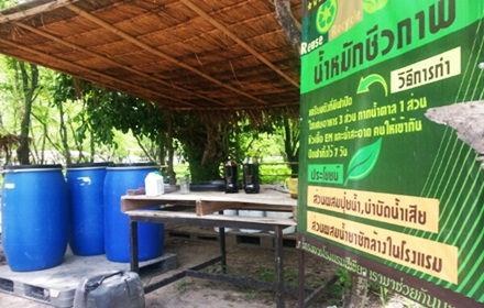 ส่วนน้ำหมักชีวภาพอีกว่า ทำด้วยเศษอาหารมีประโยชน์คือดับกลิ่นตามท่อระบายน้ำ หรือทำจากเปลือกมะนาวเปลือกสัปปะรดนำไปเช็ดทำความสะอาดครัว ลดการซื้อน้ำยาทำความสะอาดเคมี